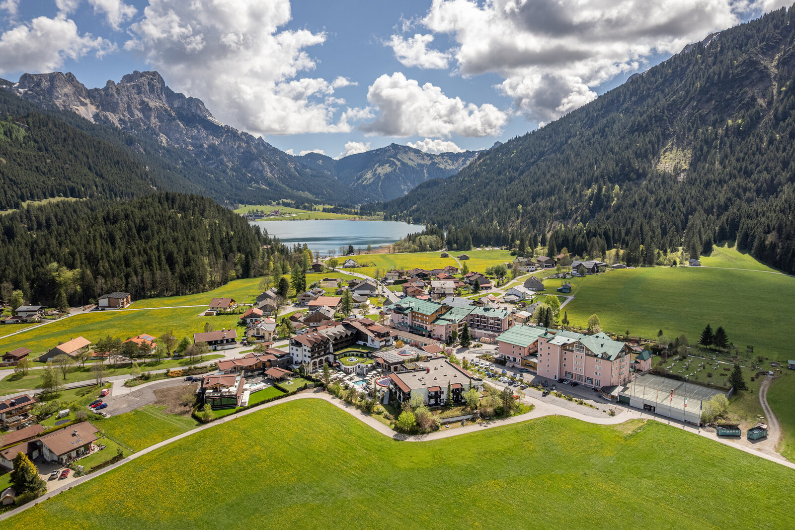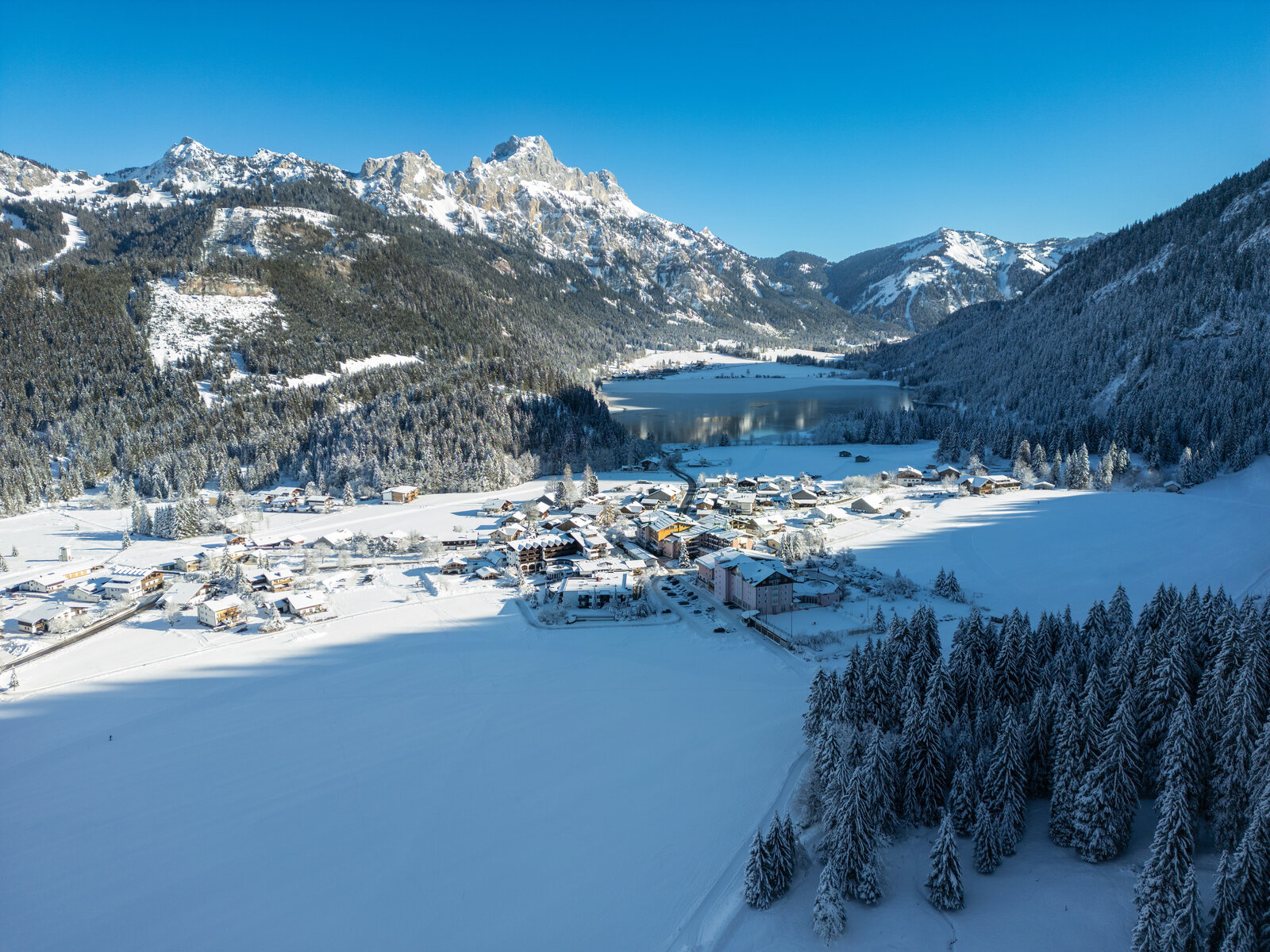 Ob Sommer oder Winter, das Tannheimer Tal bietet unzählige Möglichkeiten. Vom Hotel aus starten Sie zu Wanderungen und Radtouren, der Haldensee lädt zum Baden und Entspannen ein. Im Winter führen Langlaufloipen und Winterwanderwege direkt am Haus vorbei, die Skigebiete erreichen Sie bequem in wenigen Minuten – mit dem kostenlosen Skibus.