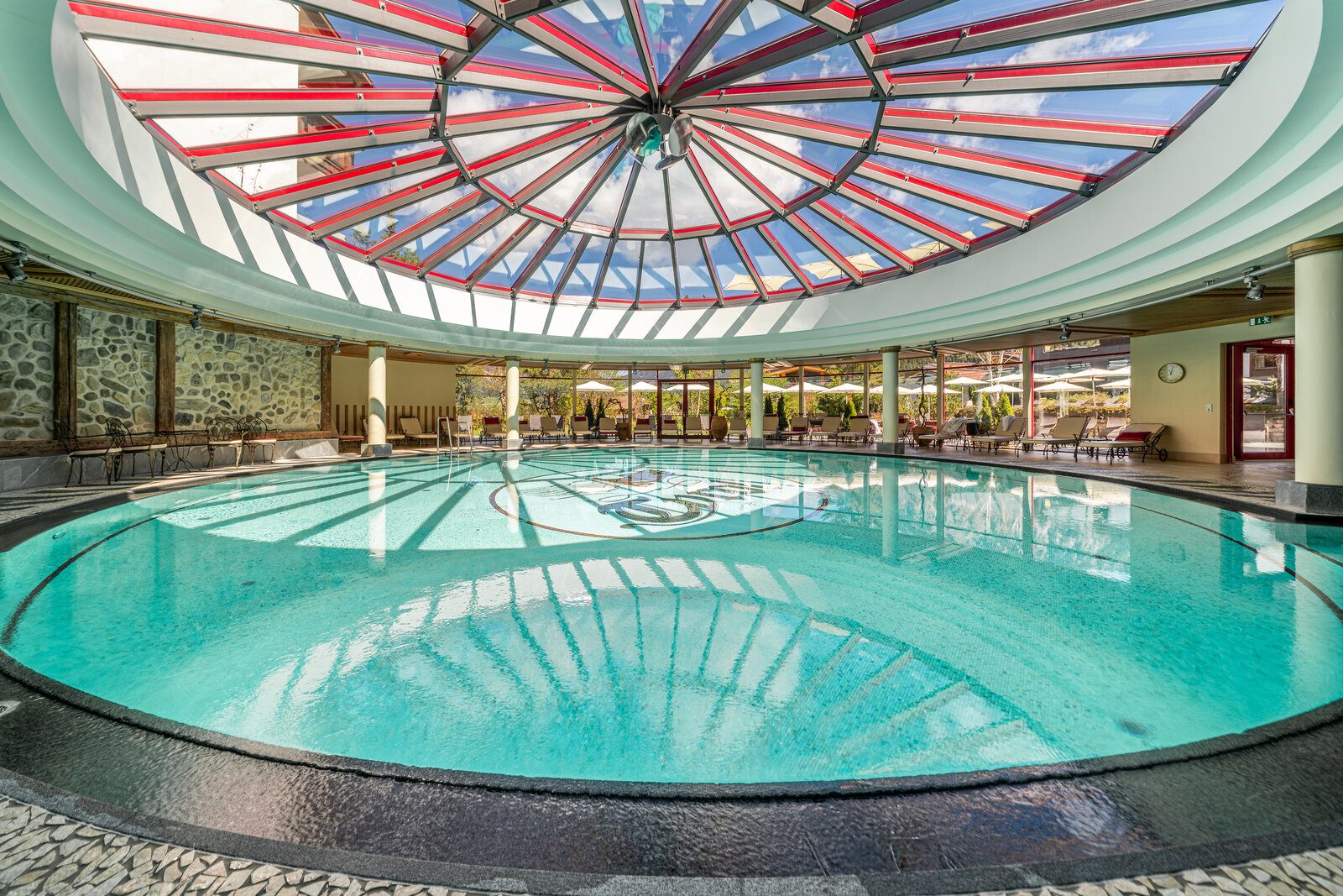 Ob drinnen unter einer eleganten Lichtkuppel oder draußen unter freiem Himmel – unsere Pools laden das ganze Jahr über zum Schwimmen und Entspannen ein.