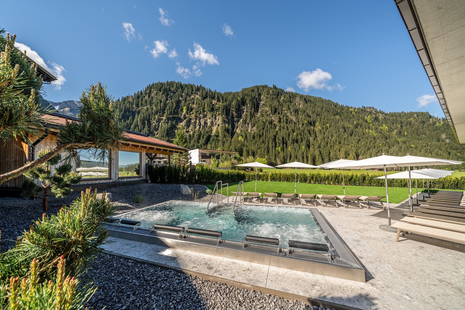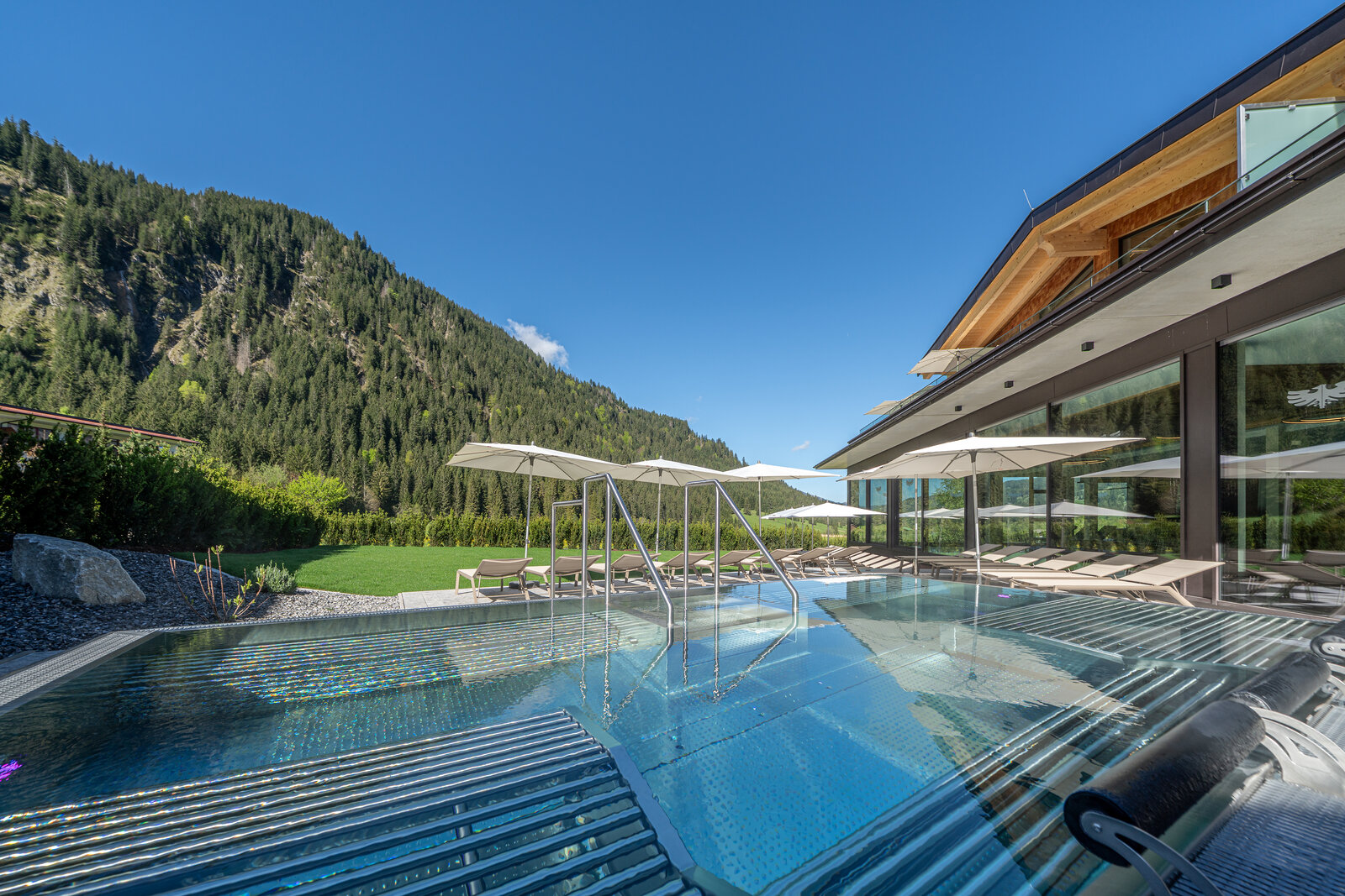 Ganzjährig beheizt und mit Sonnendecks ausgestattet, genießen Sie hier klares Wasser, frische Luft und den Blick auf die umliegende Bergwelt.