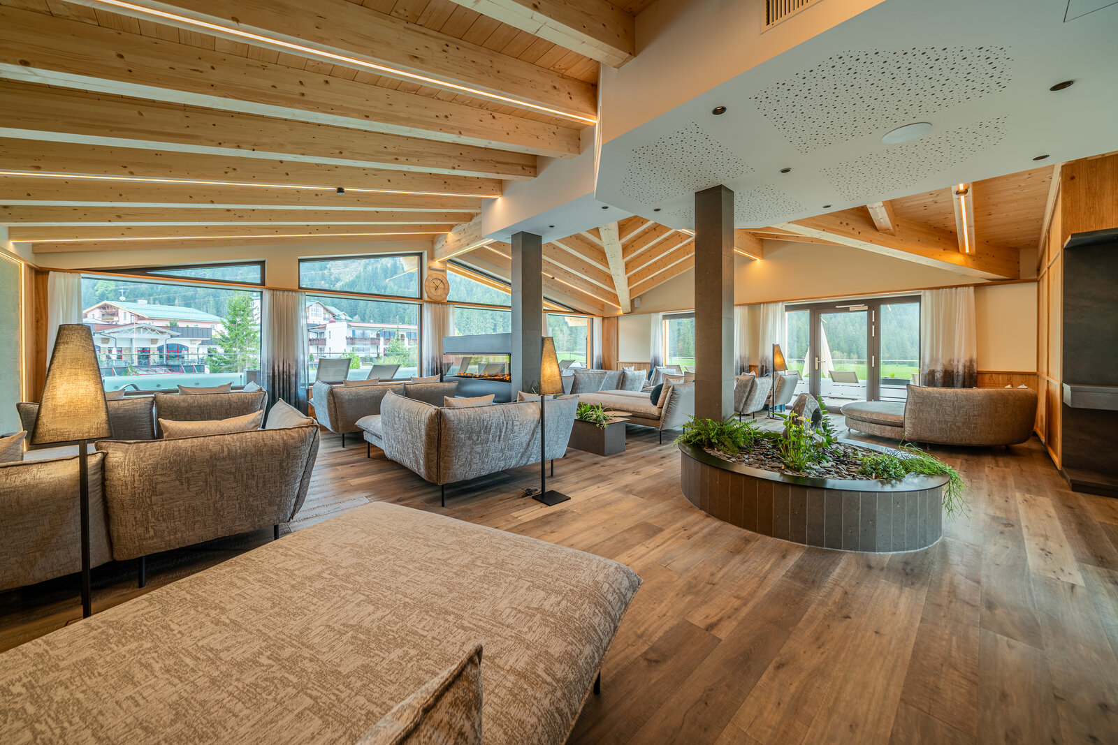 Nach dem Saunagang entfaltet sich die Wirkung der Zirbe besonders im Ruheraum Zirbenwald – hier schlägt das Herz nachweislich ruhiger und Sie finden tiefe Entspannung.