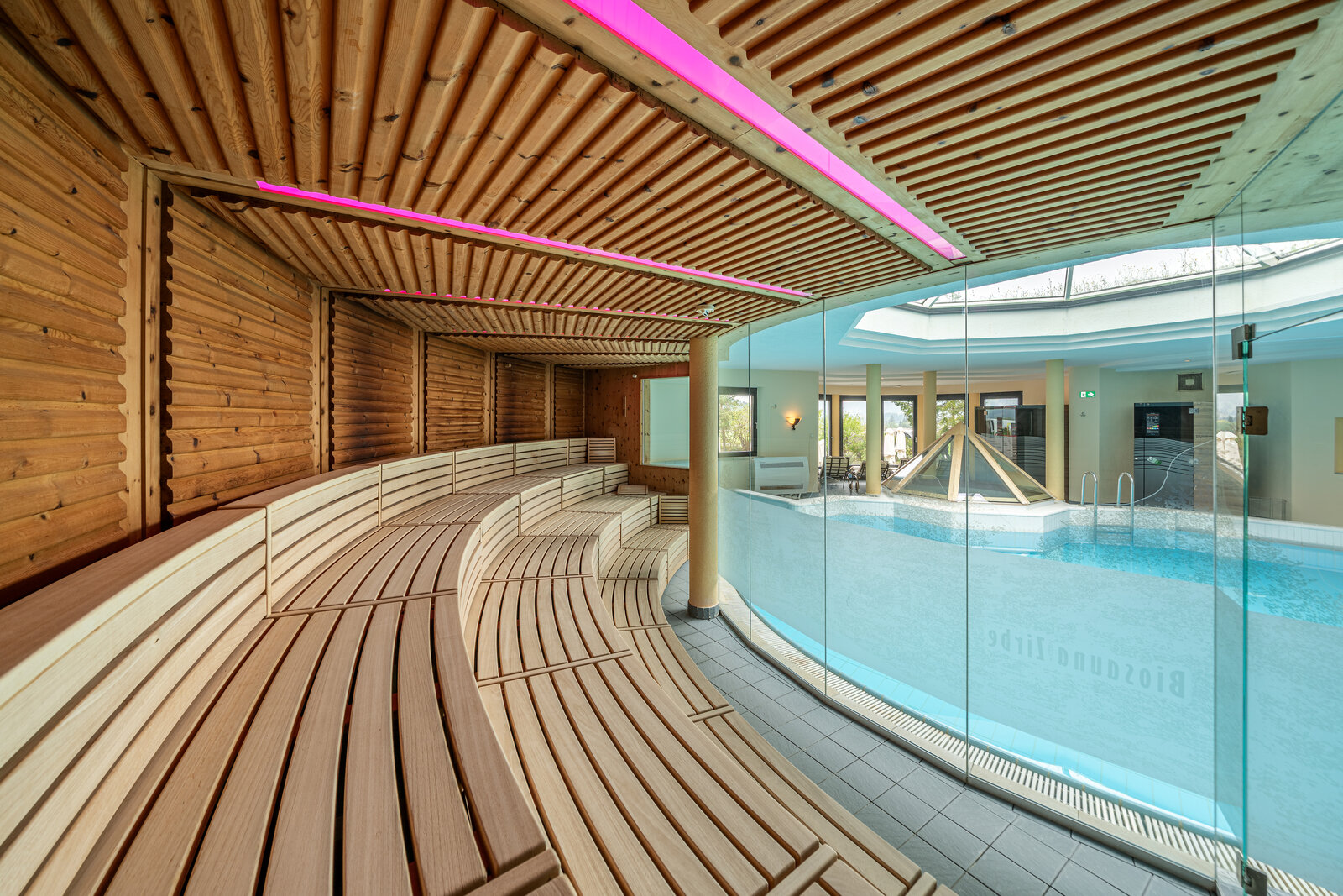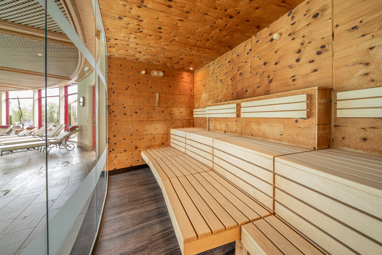 Insgesamt erwarten Sie sechs verschiedene Saunen und Dampfbäder – von der Panorama-Gartensauna bis zur Biosauna Zirbe.